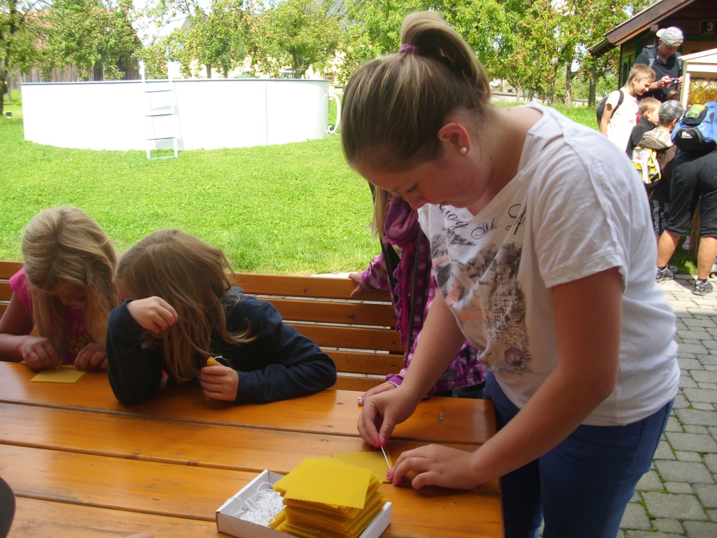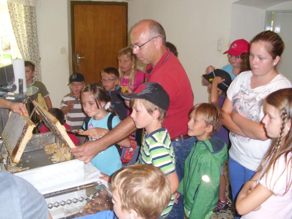 Unter diesem Motto stand eine der vielen gut besuchten Ferienpassaktionen in diesem Jahr. Die Familienfreundliche Gemeinde unter der Leitung von Astrid Lüftinger und Gabi Pühringer widmete diese Veranstaltung den fliegenden Tieren. Zuerst wurde die Imkerei von Ernst und Gertrude Stadlhuber, Matthias z`Bergham besucht. Dort erfuhren die Kinder sehr viel über Biene Maya und Co. Sogar beim Honig schleudern durften die Kinder zusehen und jeder bekam eine kleine Kostprobe mit nach Hause. Mit Tochter Sandra wurden kleine Bienenwachskerzen gefertigt. Nach den vielen Eindrücken und dem erworbenen Fachwissen sowie einer kleinen Stärkung ging´s dann mit dem Traktor von Josef Eder weiter zu Christian Brunner, wo es sehr viele Vögel zu bestaunen gab. Das abschließende Highlight war der Besuch des Zwergerlwaldes.