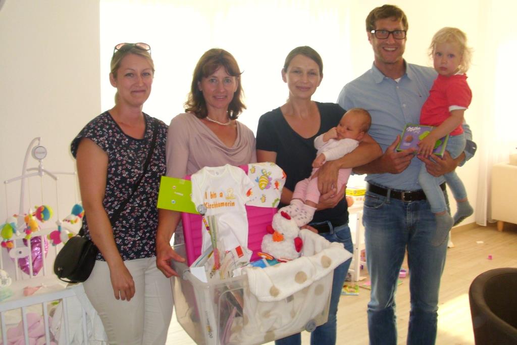 Das Team der Familienfreundlichen Gemeinde Kirchham mit Astrid Lüftinger, Bianca Haas und Gabi Pühringer an der Spitze konnten die liebevoll, persönlich zusammengestellte Geschenkbox, die jeder zur Geburt erhält, den glücklichen Eltern Sandra u. Gerald Kotek, Steg 27, überbringen. Sie gratulierten damit zur Geburt ihrer Tochter Julia, die im Mai das Licht der Welt erblickte und überbrachten gleichzeitig auch die besten Glückwünsche seitens der Gemeinde.