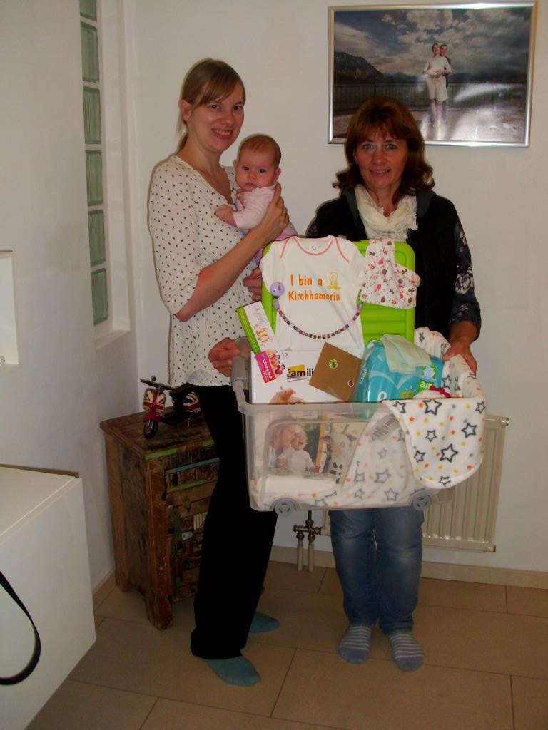 Eine weitere Geschenkbox für neugeborene KirchhamerInnen wurde von Astrid Lüftinger und Gabi Pühringer, den Hauptverantwortlichen der Familienfreundlichen Gemeinde, an die jungen Eltern Corina u. Harald Lauber, Im Tal 17, überreicht. Das persönlich zusammengestellte Geschenk überreichten sie anlässlich der Geburt von Tochter Sophia, die Anfang August auf die Welt kam. Neben den Glückwünschen der Familienfreundlichen Gemeinde überbrachten sie auch die besten Wünsche der Gemeinde.