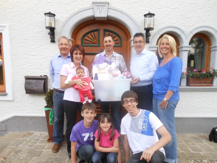 Bürgermeister Hans Kronberger, Sozialausschuss-Obmann Ingo Dörflinger und die Projektleiterin der Familienfreundlichen Gemeinde Gabi Pühringer und Astrid Lüftinger überbrachten an unseren Vizebürgermeister Anton Pühringer und seiner Gattin Doris das „Kirchhamer Waisat“ für ihre unlängst geborene Tochter Kathrin. Auch wir von der ÖVP-Fraktion gratulieren Anton und Doris sehr herzlich und wünschen alles erdenklich Gute! |