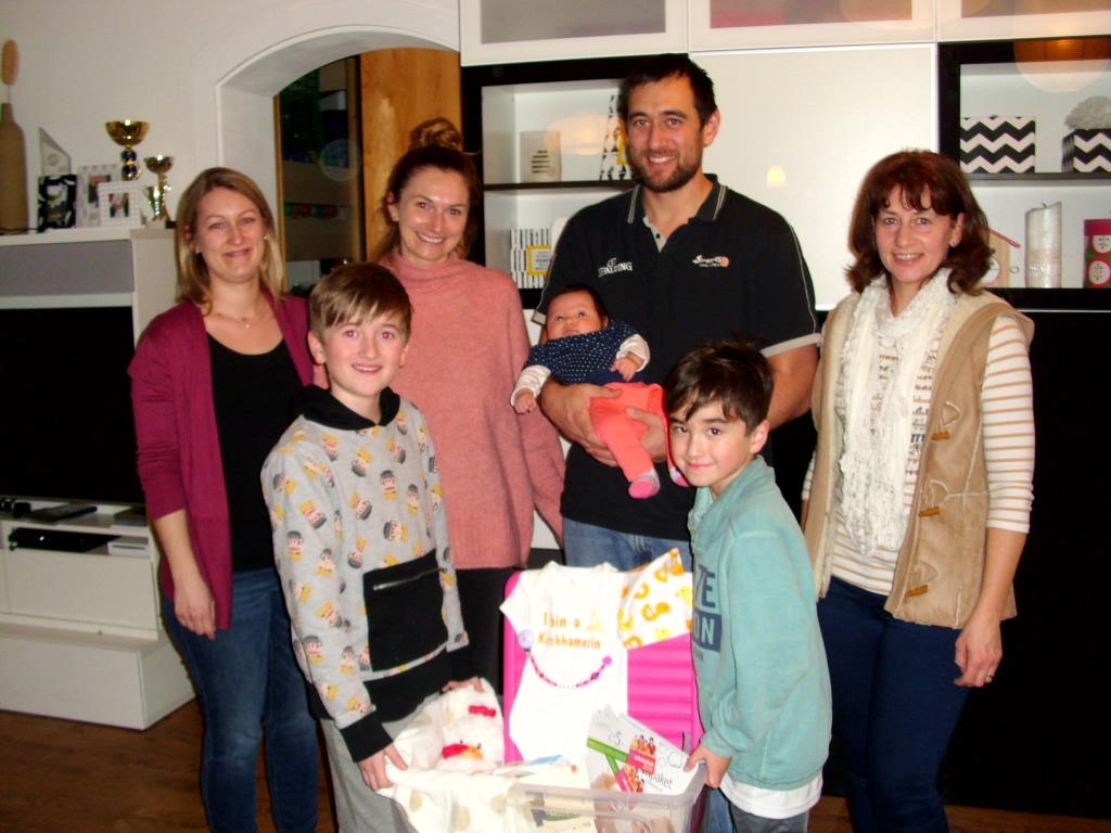 Mit großer Freude konnten das Team der Familienfreundlichen Gemeinde Kirchham wieder ein Kirchhamer Waisat überbringen. Gabi Pühringer und Astrid Lüftinger sowie Bianca Fischer überreichten diese persönlich zusammengestellte Aufmerksamkeit der Familienfreundlichen Gemeinde den glücklichen Eltern Florian Jong-dsin u. Christiane Schöninger, Kapellenweg 14, und wünschten damit alles Gute auch seitens der Gemeinde  für ihre Tochter Anna, die im November das Licht der Welt erblickte. Auch die großen Brüder freuten sich über die Besucherinnen. .