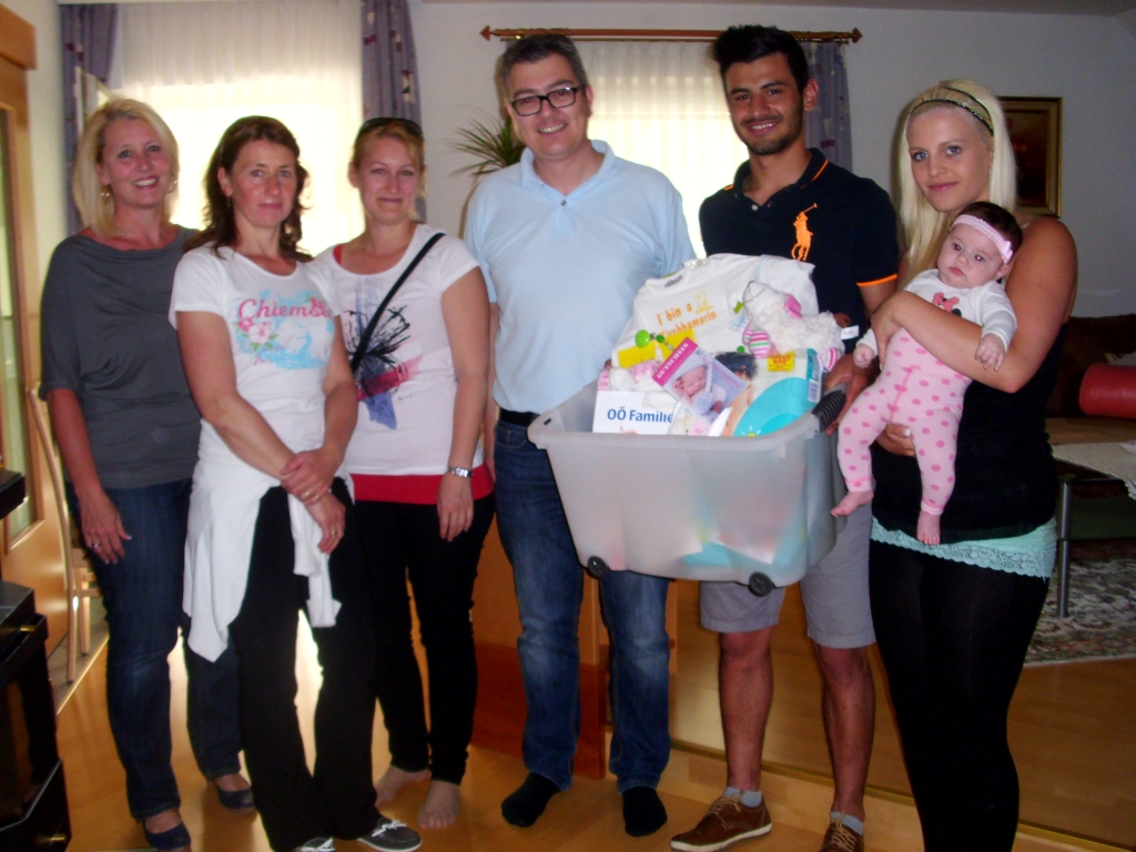 Den stolzen Eltern Janine Medl und Walid Habibzadeh, Kirchham, konnten Bianca Fischer, Astrid Lüftinger und Gabi Pühringer für das Team der Familienfreundlichen Gemeinde Kirchham sowie der Obmann des Sozialausschusses Ingo Dörflinger das „Kirchhamer Waisat“ für ihre Anfang März geborene Tochter Celina Ahliya überbringen. Gleichzeitig überbrachten sie auch die besten Glückwünsche seitens der Gemeinde.
