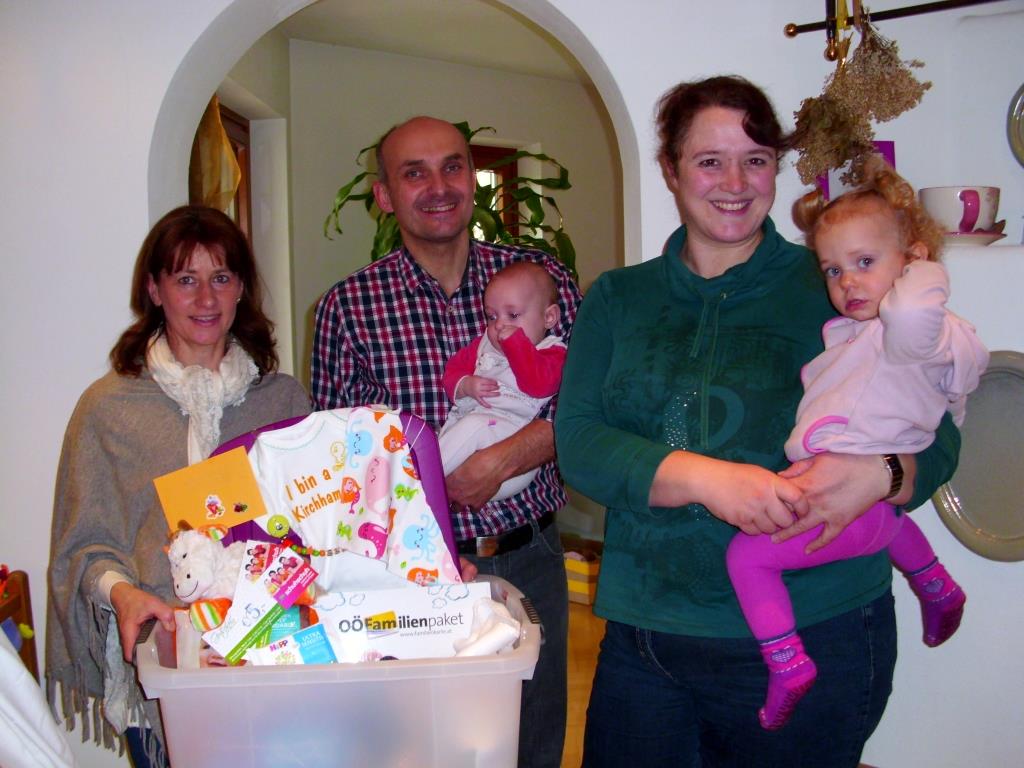 Das Führungsteam der Familienfreundlichen Gemeinde, Astrid Lüftinger und Gabi Pühringer durften vor Kurzem wieder bei jungen Kirchhamer Eltern mit einer kleinen, liebevoll zusammengestellten Aufmerksamkeit, dem Kirchhamer Waisat, vorbeischauen.