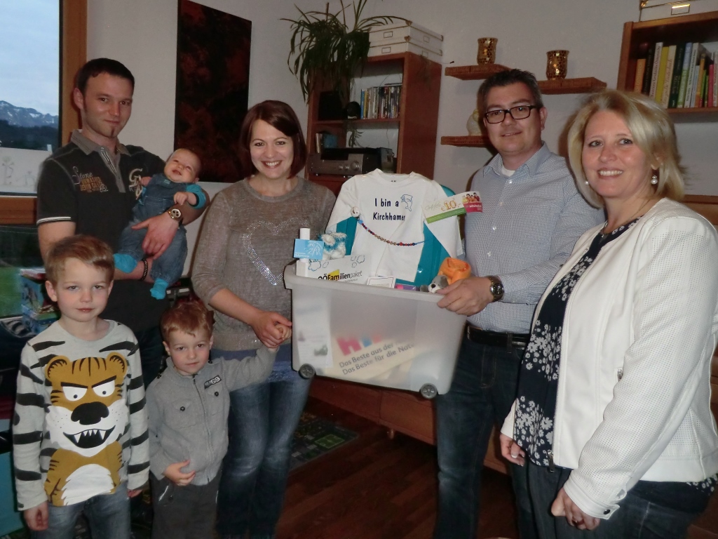 Den stolzen Eltern Silvia und Wolfgang Kaiser,  Wahl 26,  konnten Gabi Pühringer und Astrid Lüftinger vom Team der Familienfreundlichen Gemeinde Kirchham sowie der Obmann des Sozialausschusses Ingo Dörflinger das „Kirchhamer Waisat“ für ihren Anfang Februar geborenen Sohn Dominik überbringen. Neben dem liebevoll zusammengestellten Geschenk überbrachten sie auch die besten Glückwünsche seitens der Gemeinde.