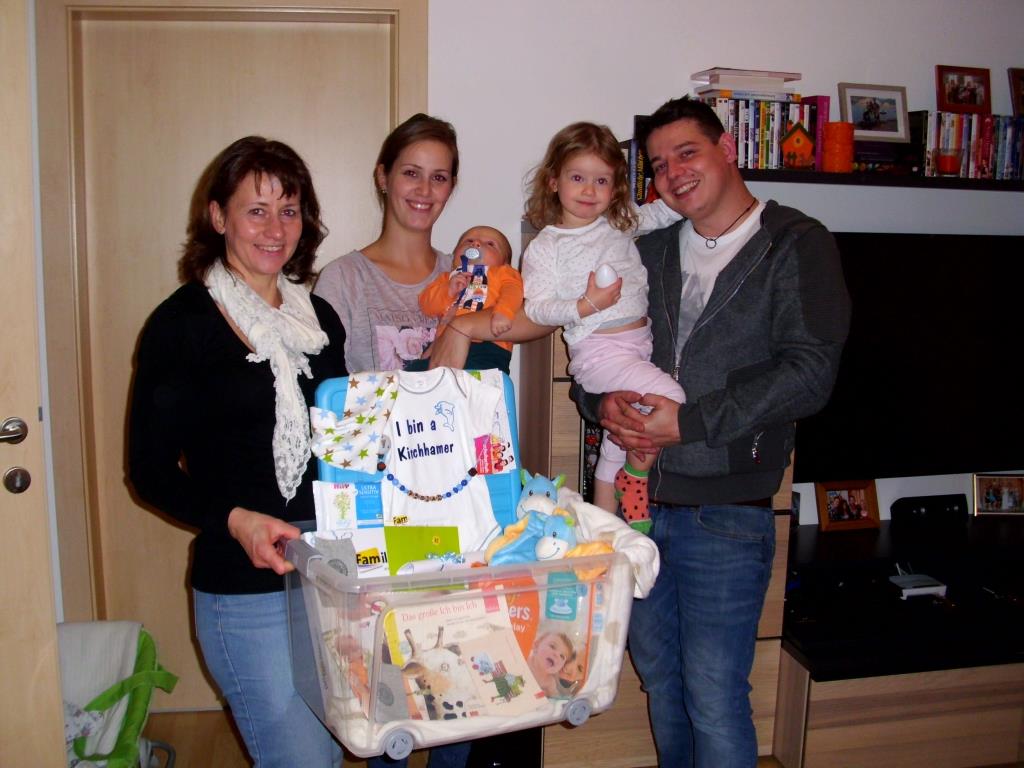 Mit Freude überbrachte das Team der Familienfreundlichen Gemeinde Kirchham wieder ein Kirchhamer Waisat. Gabi Pühringer und Astrid Lüftinger überraschten mit dieser liebevoll zusammengestellten Aufmerksamkeit der Familienfreundlichen Gemeinde die glücklichen Eltern Nicole u. Gerald Holzinger, Florianiweg 5, und wünschten damit auch seitens der Gemeinde alles Gute für ihren Sohn Fabian, der im September auf die Welt kam. Auch die große Schwester zeigte sich erfreut über die Besucherinnen.