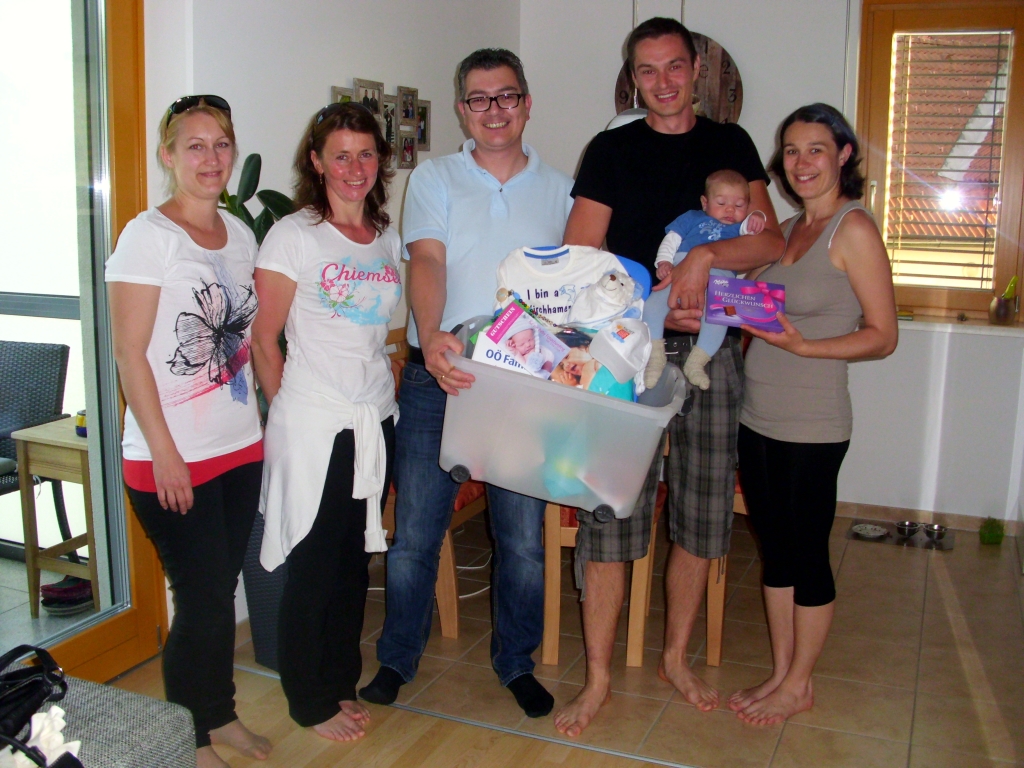 Den stolzen Eltern Melanie und Matthias Fraunhuber, Florianiweg, konnte das Team der Familienfreundlichen Gemeinde Kirchham Bianca Fischer, Astrid Lüftinger und Gabi Pühringer sowie der Obmann des Sozialausschusses Ingo Dörflinger das "Kirchhamer Waisat" für ihren Sohn Noel überbringen. Gleichzeitig überbrachten sie auch die besten Glückwünsche seitens der Gemeinde.