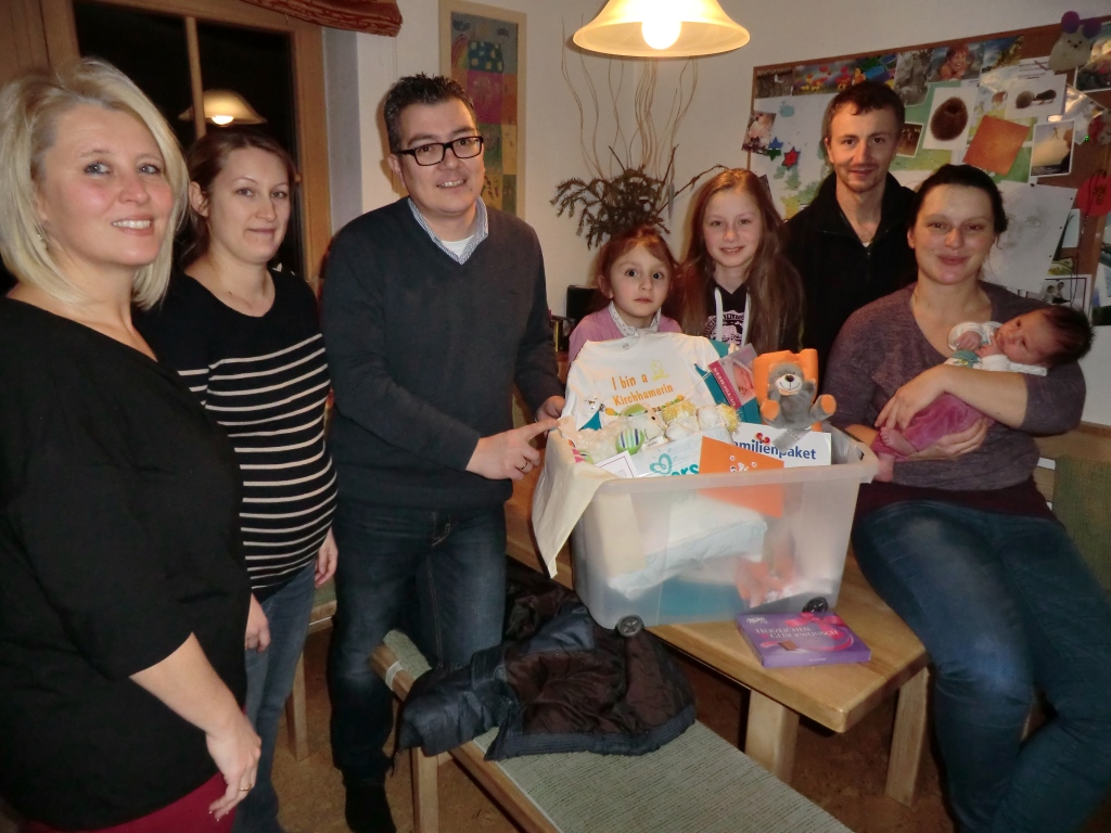 Unlängst war das Team der Familienfreundlichen Gemeinde mit Astrid Lüftinger, Gabi Pühringer und Bianca Fischer sowie der Obmann des Sozialausschusses Ingo Dörflinger bei den jungen Eltern Stefan Forstinger und Maria Forstinger Kaltenegger, Kaltenmarkt 25, um ihnen zur im Jänner geborenen Tochter Helene herzlichst zu gratulieren. Natürlich kamen sie nicht mit leeren Händen – sie überbrachten neben den besten Glückwünschen auch seitens der Gemeinde das persönlich zusammengestellte Kirchhamer Waisat. Auch wir wünschen den Eltern mit ihrem 3-Mäderl-Haus alles Gute! |