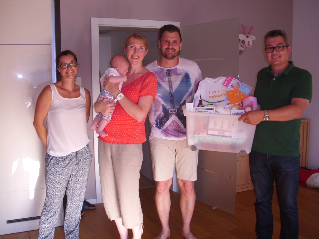 Den stolzen Eltern Kornelia Kronberger und Martin Weixelbaum, Kirchham 40, konnten Astrid Lüftinger und Isabella Rauscher vom Team der Familienfreundlichen Gemeinde Kirchham sowie Sozialausschussobmann Ingo Dörflinger das "Kirchhamer Waisat" für ihre Ende April geborene Tochter Ina überbringen. Neben der liebevoll zusamengestellten Geschenkbox überbrachten sie auch die besten Glückwünsche seitens der Gemeinde. Auch wir wünschen der jungen Familie alles Gute und Gottes Segen.