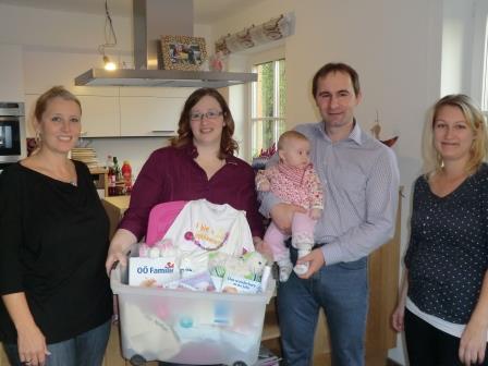 Das Team der Familienfreundlichen Gemeinde, rund um Astrid Lüftinger, Bianca Fischer und Gabi Pühringer, war in den letzten Wochen ganz besonders aktiv und gestaltete mit viel Liebe und Geduld Geschenkboxen für die neugeborenen Kinder von Kirchham, das sogenannte Kirchhamer Waisat. Eine weitere dieser Geschenkboxen überbrachten sie vor kurzem den stolzen Eltern Gerhard Lehner u. Christine Maria Ehmeier, Feichtenberg 23, für ihre Tochter Julia Marie, welche Anfang Juli das Licht der Welt erblickte. Sie überbrachten damit auch die besten Glückwünsche seitens der Gemeinde. Auch wir wünschen viel Glück, Freude, Gesundheit und Gottes Segen! |