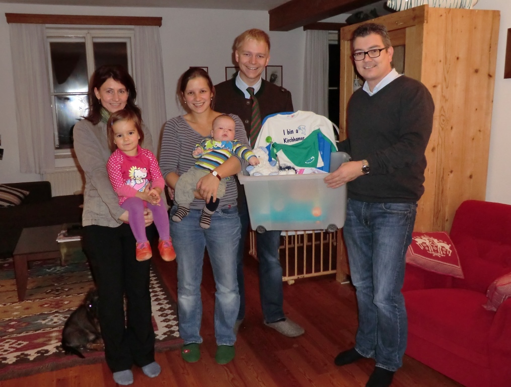 Den stolzen Eltern Birgit und Florian Stöhr, Hagenmühle 58, konnten vor kurzem das Team der Familienfreundlichen Gemeinde Kirchham Bianca Fischer und Gabi Pühringer sowie der Obmann des Sozialausschusses Ingo Dörflinger das "Kirchhamer Waisat" für ihren Sohn Leopold überbringen. Gleichzeitig überbrachten sie auch die besten Glückwünsche seitens der Gemeinde.