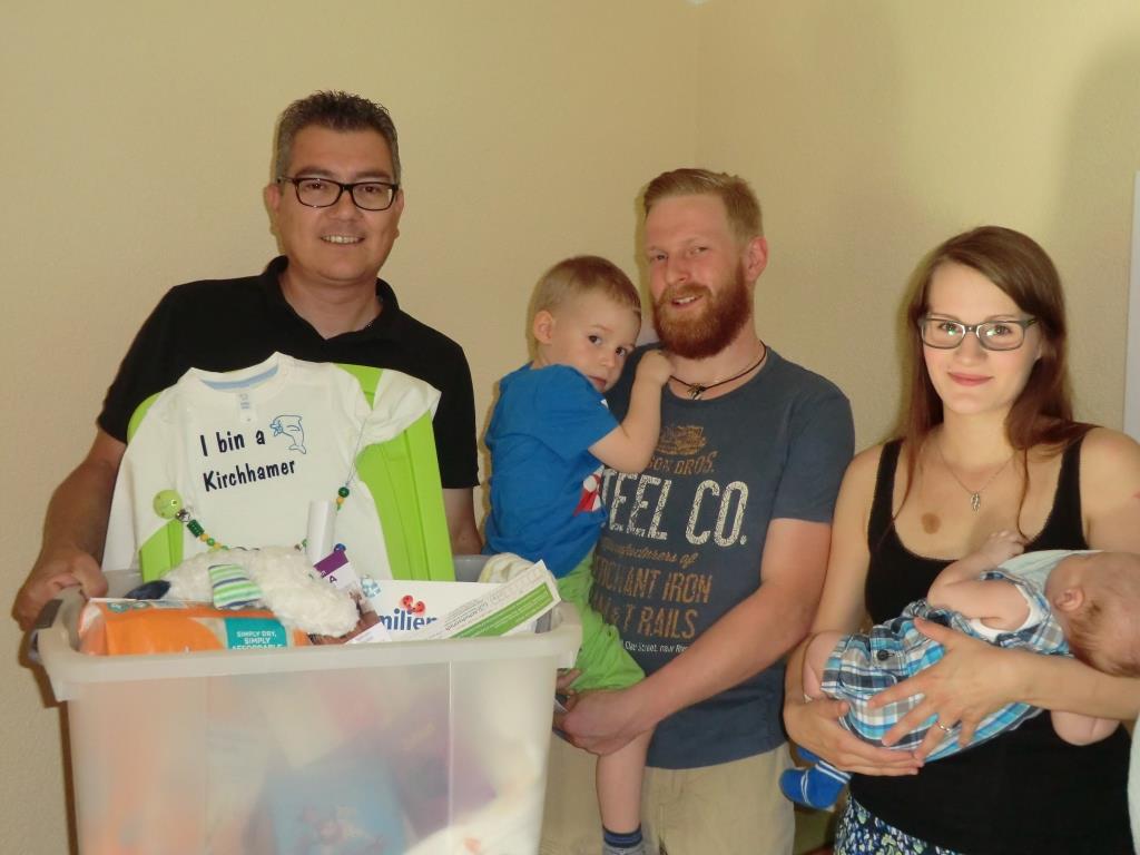 | Unlängst waren Gabi Pühringer von der Familienfreundlichen Gemeinde gemeinsam mit dem Obmann des Sozialausschusses Ingo Dörflinger bei den jungen Eltern Florian Prem und Denise Baumgartner, Feichtenberg 30, um ihnen zu ihrem Mitte Mai geborenen Sohn Lukas herzlichst zu gratulieren. Als ganz persönliches Geschenk überreichten sie die liebevoll zusammengestellte Kirchhamer Geschenkbox. Auch die besten Glückwünsche seitens der Gemeinde überbrachten sie bei ihrem Besuch. Wir wünschen der jungen Familie ebenfalls alles Gute und Gottes Segen! |