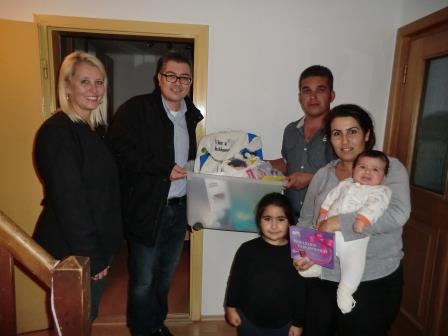 Mit einem Kirchhamer Waisat, wieder liebevoll zusammengestellt vom Führungsteam der Familienfreundlichen Gemeinde Astrid Lüfinger und Gabi Pühringer, durfte das Team vor Kurzem  die jungen Eltern Mehmet und Lutfiye Kocaman, In der Au 21, beschenken. Anlässlich der Geburt ihres Kindes Mahir Eren überbrachten die beiden gemeinsam mit dem Obmann des Sozialausschusses Ingo Dörflinger das Kirchhamer Waisat und die besten Glückwünsche seitens der Gemeinde.