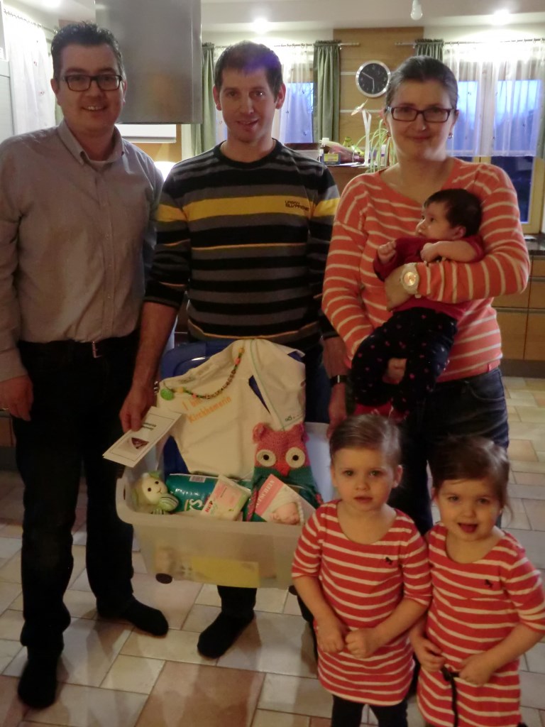 Den stolzen Eltern Marianne Mayrhofer und Martin Tiefenthaller, Kampesberg 15, konnten Gabi Pühringer für das Team der Familienfreundlichen Gemeinde Kirchham sowie der Obmann des Sozialausschusses Ingo Dörflinger das "Kirchhamer Waisat" für ihre am 21. Dezember geborene Tochter Marie-Luise  überbringen. Gleichzeitig überbrachten sie auch die besten Glückwünsche seitens der Gemeinde.