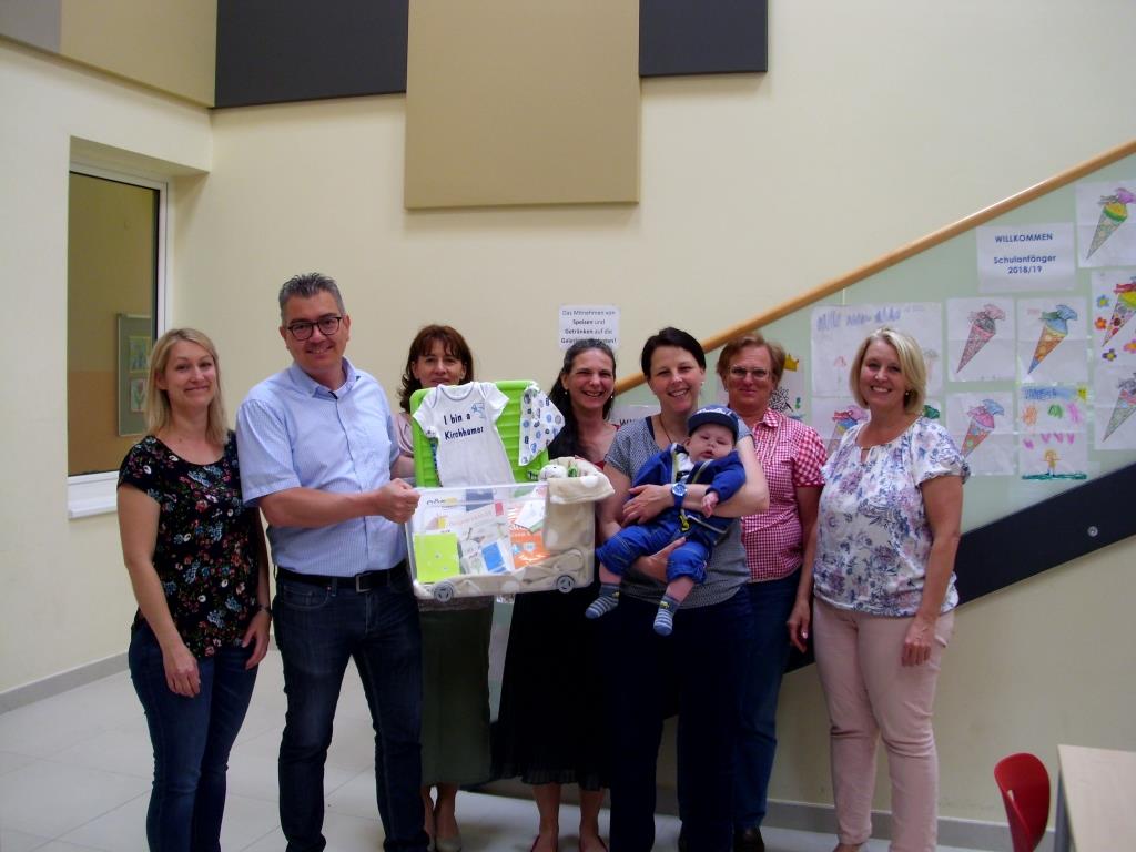 Das Team der Familienfreundlichen Gemeinde Kirchham mit Astrid Lüftinger, Gabi Pühringer und Bianca Fischer an der Spitze sowie Sozialausschussobmann Ingo Dörflinger nutzen den feierlichen Rahmen der Lebensbaumaktion um den Eltern Steinhauser Caroline u. Johann Holzinger, Kampesberg 41, die liebevoll zusammengestelle Geschenkbox für ihren Sohn Samuel, der Anfang Oktober das Licht der Welt erblickte, zu überreichen. Auch die Oma und Tante freute sich über das Geschenk!