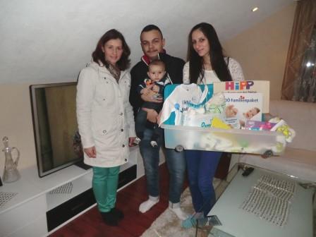 Mit Freude konnten das Team der Familienfreundlichen Gemeinde Astrid Lüftinger und Gabi Pühringer das Kirchhamer Waisat den Eltern Sezai und Cilem Caliskan, Eisengattern 19, für ihren kleinen Sohn Sezer überbringen. Sezer, der Ende Oktober das Licht der Welt erblickte, zeigte sich sichtlich erfreut von den netten Geschenken und Glückwünschen. Auch wir schließen uns den Glückwünschen ganz herzlich an! |