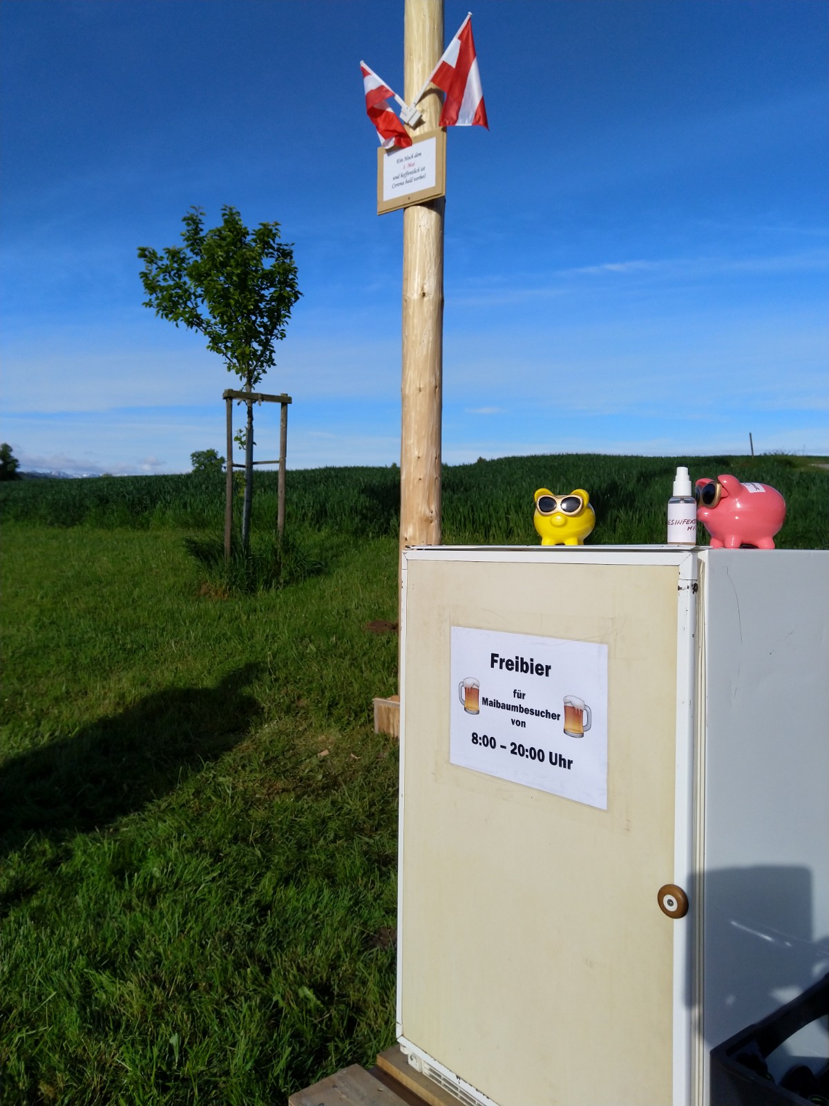 Familie Pühringer lädt alle Spaziergänger, Radfahrer und Besucher des Maibaums bis Montag, 4. Mai auf Freibier bzw. Apfelsaft ein. Ein Kühlschrank mit Getränken steht dazu jeweils von 8 Uhr bis 20 Uhr direkt bei diesem schön geschmückten Baum bereit, Getränke können selbstständig herausgenommen werden. „Eine freiwillige Spende kann gerne in den bereitgestellten Sparer geworfen werden und geht 1:1 an den Sozialfond Kirchham“, so teilt Anton Pühringer mit.