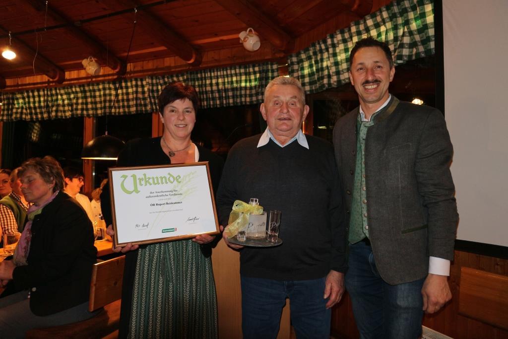 Für die langjährige Bauernbundmitgliedschaft für 40, 50 und 60 Jahre wurden Urkunden an die treuen Mitglieder überreicht. Ein besonderer Dank und Auszeichnung wurde dem ausscheidenden Altbauernobmann ÖR Rupert Beiskammer für seine langjährigen Verdienste im Bauernbund ausgesprochen.