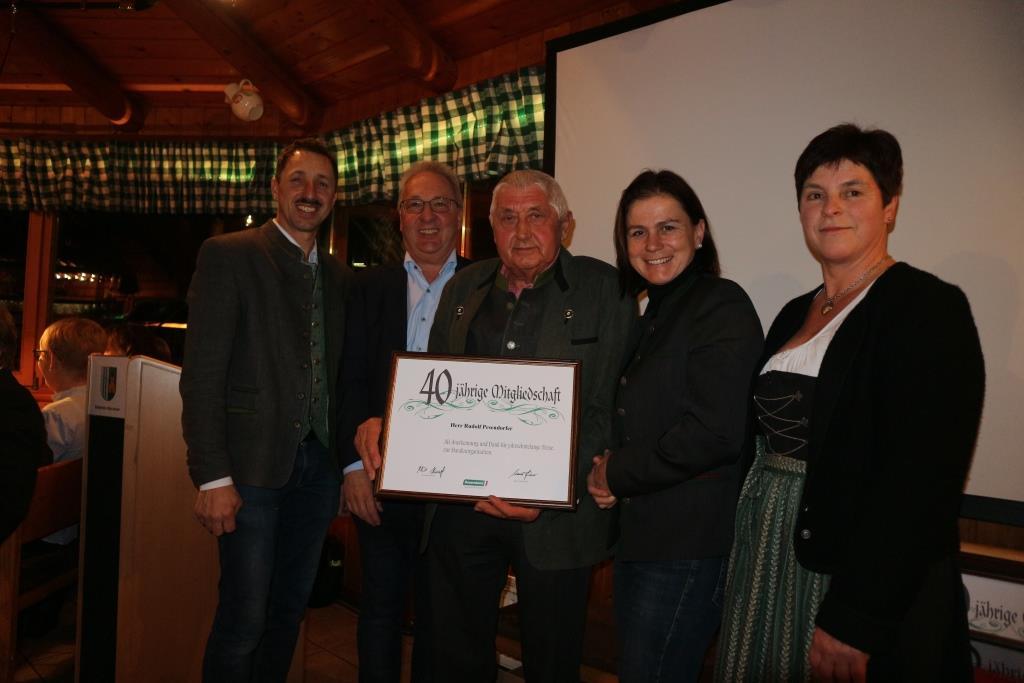 Für die langjährige Bauernbundmitgliedschaft für 40, 50 und 60 Jahre wurden Urkunden an die treuen Mitglieder überreicht. Ein besonderer Dank und Auszeichnung wurde dem ausscheidenden Altbauernobmann ÖR Rupert Beiskammer für seine langjährigen Verdienste im Bauernbund ausgesprochen.