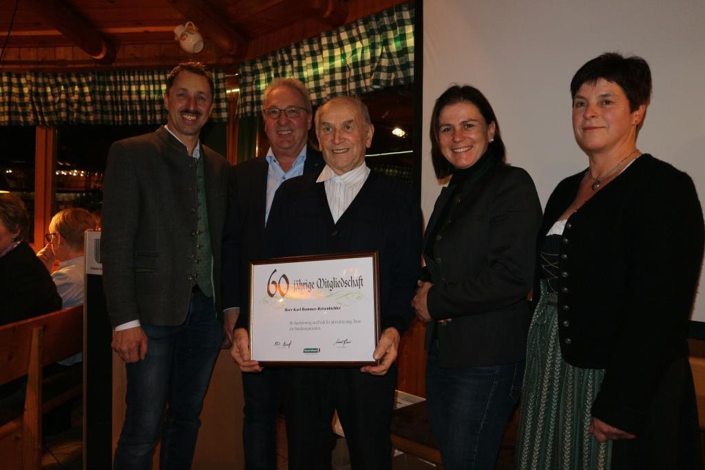 Für die langjährige Bauernbundmitgliedschaft für 40, 50 und 60 Jahre wurden Urkunden an die treuen Mitglieder überreicht. Ein besonderer Dank und Auszeichnung wurde dem ausscheidenden Altbauernobmann ÖR Rupert Beiskammer für seine langjährigen Verdienste im Bauernbund ausgesprochen.