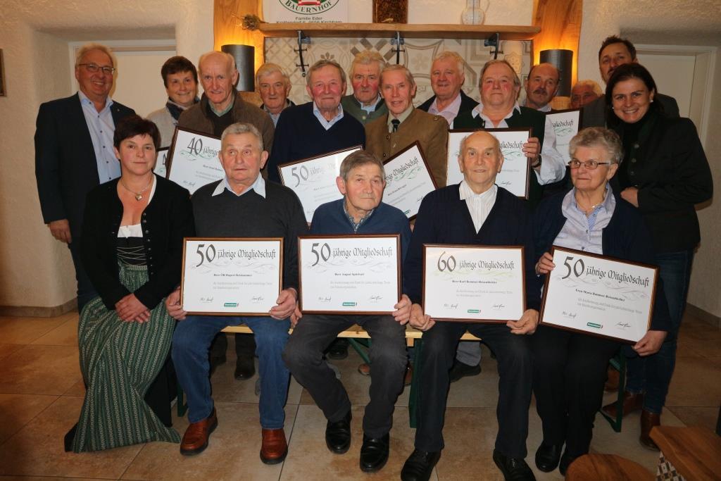 Für die langjährige Bauernbundmitgliedschaft für 40, 50 und 60 Jahre wurden Urkunden an die treuen Mitglieder überreicht. Ein besonderer Dank und Auszeichnung wurde dem ausscheidenden Altbauernobmann ÖR Rupert Beiskammer für seine langjährigen Verdienste im Bauernbund ausgesprochen.