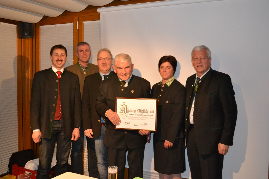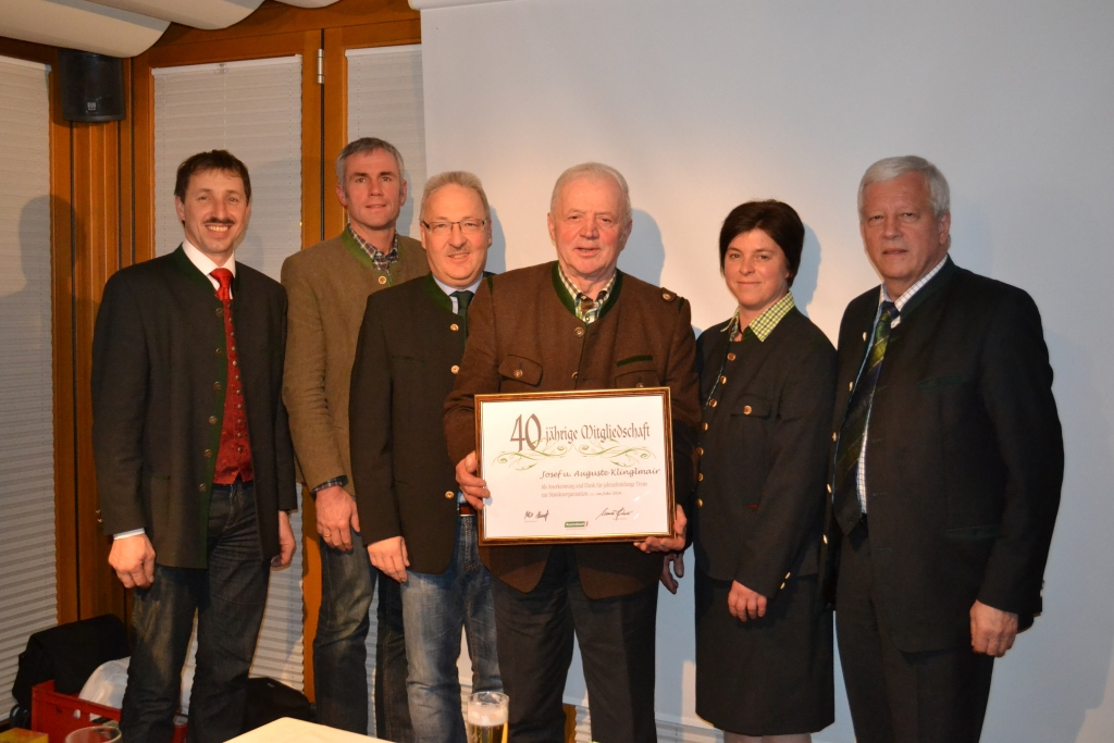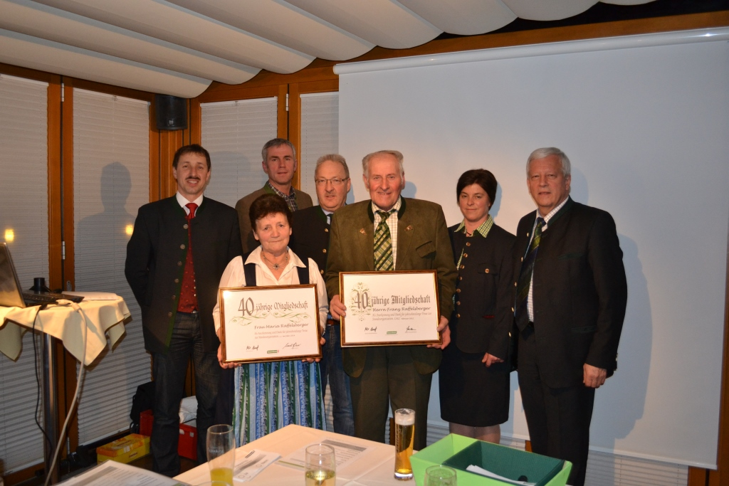 40jährige Mitgliedschaft: Berta Danzer, Alois Hessenberger, Josef Klinglmair, Hubert Prem, Franz und Maria Raffelsberger, Josef Tiefenthaler