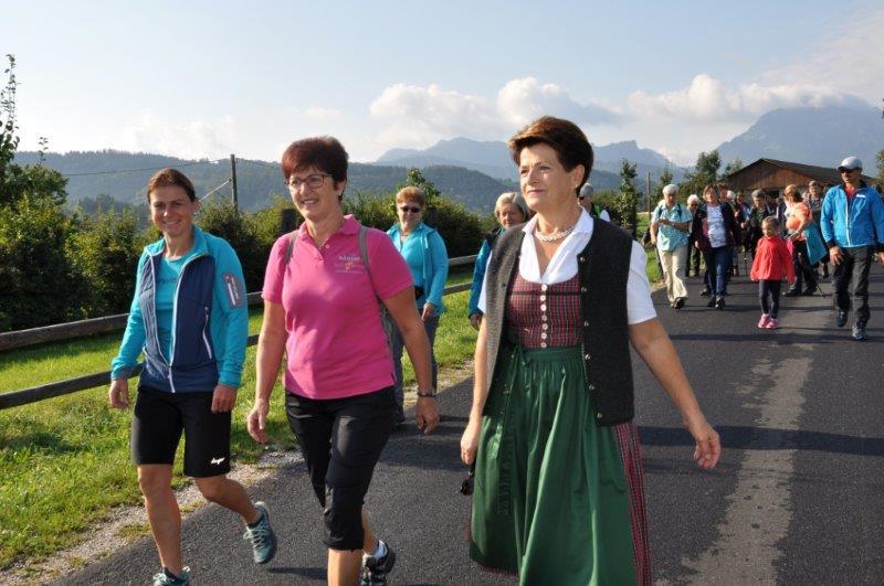 Beim 46. Bezirks- Bäuerinnenwandertag Gmunden Vöcklabruck konnten Vizebürgermeister Dörflinger Ingo und Ortsbäuerin Raffelsberger Andrea 60 Bäuerinnen darunter einige Kinder sowie LAbg. Martina Pühringer die Bezirksspitzenkandidatin zum Nationalrat Bettina Zopf, Bezirksbäuerin Wimmer Anni und Ortsbauernobmann Pühringer Anton bei perfekten Wanderwetter begrüßen.