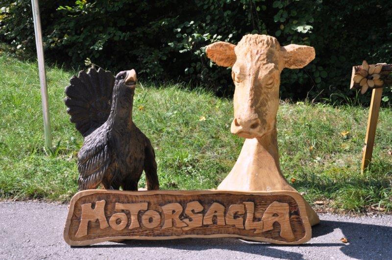 Staatsmeister im Motorsägenschnitzen Herbert Danzer stellte sich einigen Fragen der Bäuerinnen und lud auf ein gutes Stamperl Schnaps ein. Kreative Holzskulpturen, die eigens für die Wanderung von Herbert aufgestellt wurden, konnten besichtigt werden. Dem Motorsagla auf die Finger zu schauen war ebenfalls sehr beeindruckend. Anschließend ging die Wanderung entlang der Mühlenstraße über Leithen zum Ausgangspunkt zurück. Dort angekommen kehrten alle bei Eder Joschi zu einer guten Jause ein.