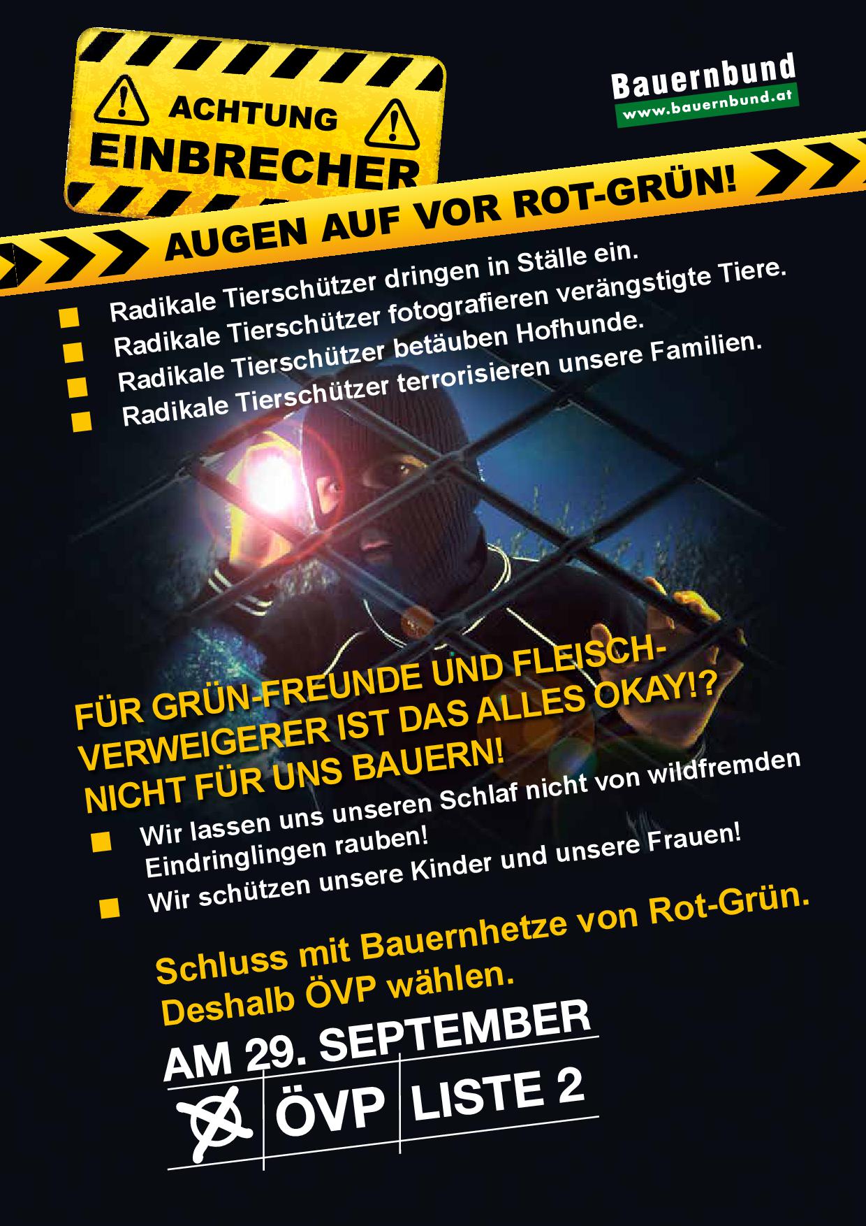 …durch Tierschützer  bei Bauernbund Funktionären als Unterstützung der Grünen Wahlpropaganda