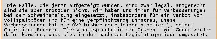 Der VGT ist offensichtlich vom Wahlkampf angestachelt und fischt für die Grünen Wählerstimmen. Grüne und VGT machen beim Tierschutz bekanntlich gerne gemeinsame Sache. 2008 kandidierte VGT-Obmann Balluch sogar auf der grünen Bundesliste
