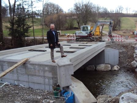 „Hüttenboden“ bereits über neue Brücke erreichbar! Trotz einiger Wetterprobleme läuft der Bau des Projektes „GW Hüttenboden“ gut voran. Die neue Brücke ist fertig und nun folgt die Errichtung der Rohtrasse. Die Asphaltierung ist für Frühjahr 2013 geplant.