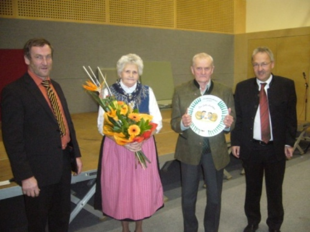 Foto: Obmann Franz Medl und Bürgermeister Hans Kronberger gratulierten den Ehegatten Franziska und Karl Plank zum „Guten Nachbarn 2009“!