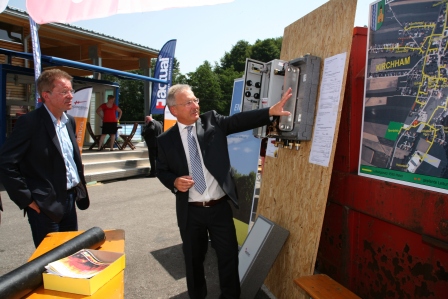 Beispielhafte Bürgerbeteiligung Auch Landesrat Rudi Anschober war von den vielen Umweltaktivitäten und der positiven Stimmung in unserem Ort begeistert. „Hier wird nicht geredet, sondern tatsächlich was für unseren Lebensraum getan“, so der Landespolitker, der die Umsetzung unseres Bürgerbeteiligungsmodells für Photovoltaik-Anlagen sogar landesweit propagieren möchte. Er lud diesbezüglich unseren Bürgermeister und Alexander Simader (Firma Energy-Changes) zu einem Termin nach Linz ein. Ganze Volksschule ins Welios eingeladen Umweltschutz ist in Kirchham ein Anliegen der gesamten Dorfgemeinschaft – dies zeigte der ausgezeichnete Besuch der Eröffnungsfeier als auch die vielbeklatschten Auftritte von Kindergarten und Volkschüler zwischen den Ansprachen. Bürgermeister Kronberger überreichte VS-Direktorin Karin Schwarzlmüller als Anerkennung für den Sieg beim österr. Klimaschutzpreis einen Gutschein für einen Ausflug der gesamten Schule ins „Welios“ nach Wels. Danke an Organisatoren und Bewirter Ein großes DANKE! gebührt der Umweltgruppe unter der Leitung von Stefan Söllner und Vizebgm. Anton Pühringer für die Organisation der viel beachteten Umweltausstellung! Und ein genauso großes DANKE! auch an das Team des Gasthauses Bauer sowie der Ortsbauernschaft für die perfekte Bewirtung und das hervorragende Essen. Kirchham und das Leben ist schön – sangen die Kindergartenkinder, und trafen dabei einmal mehr den Nagel auf den Kopf! Fotos: Sternberger/Gemeinde |