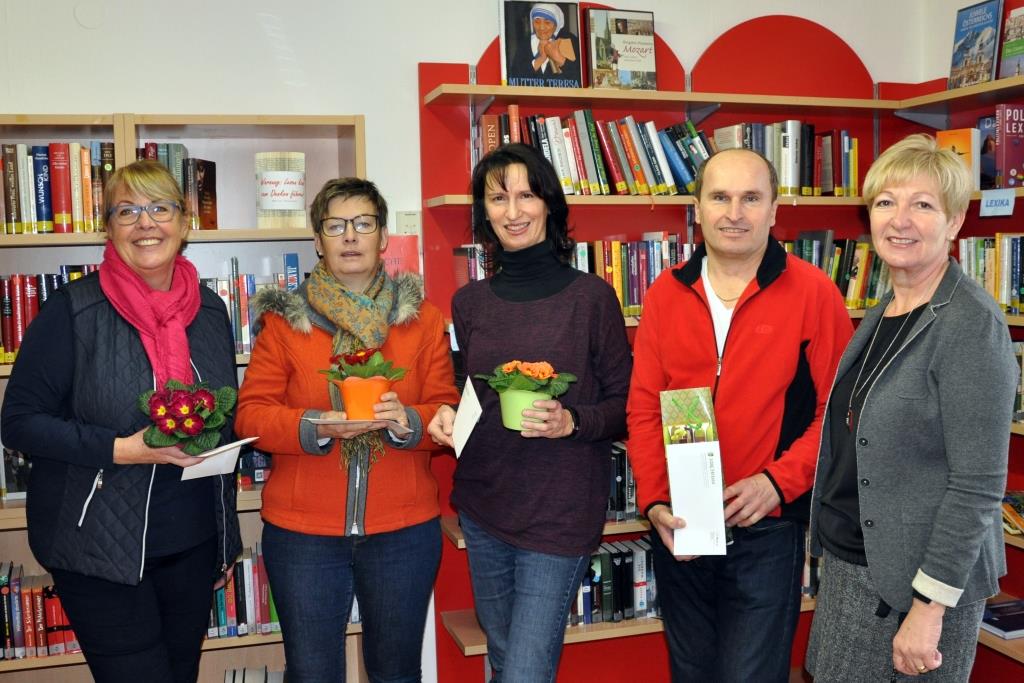 Mit über 4.000 Medien, davon 200 neuen Titeln die im Jahr 2017 angeschafft wurden, bietet die öffentliche Bücherei Kirchham ein überaus attraktives Angebot. Die Nachfrage ist stabil, insgesamt wurden im vergangenen Jahr 1.500 Entlehnungen verbucht. Bewährte und neue Kultur-Events! Das ehrenamtliche Büchereiteam ist aber auch ein wichtiger Organisator von Kulturveranstaltungen. "Neben dem bereits etablierten Kultur in der Werkstatt – Event, bei dem heuer Kabarettist Chris Böttcher zu sehen sein wird, haben wir drei weitere Veranstaltungen geplant", berichtet Büchereileiterin Elisabeth Huemer. Am 1. März gibt’s im Gasthaus Pöll eine humorvolle Ausgabe von "Heiteres in Wort & Klang" mit Anneliese Schmidler und dem Chor "Together", am 1. Juli ein Kirchenkonzert mit dem Ohlsdorfer Kammerchor und die Literaturwanderung am 22. September wird von Starautor Herbert Dutzler begleitet. Meistleser geehrt! Besonders bemüht sich die Kirchhamer Bücherei um den "Lese-Nachwuchs". So werden demnächst in den Büchereiräumlichkeiten mehrere Vorlesestunden für Kinder im Kindergartenalter abgehalten. Die eifrigsten Leseratten/innen wurden auch heuer wieder bei einer kleinen Feier mit Gutscheinen geehrt. Es sind dies Elfriede Wolfsgruber, Anna Buchegger, Martina Hutterer und Wolfgang Jungwirth, auf unserem Foto mit Büchereileiterin Elisabeth Huemer (v.l.n.r.). Foto: Martha Steinbach