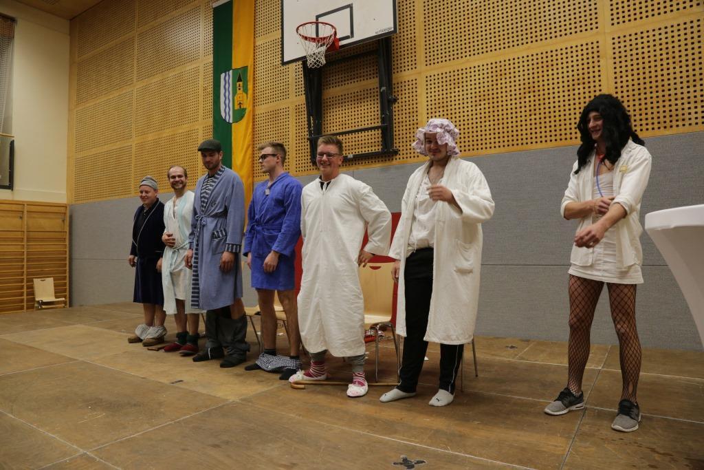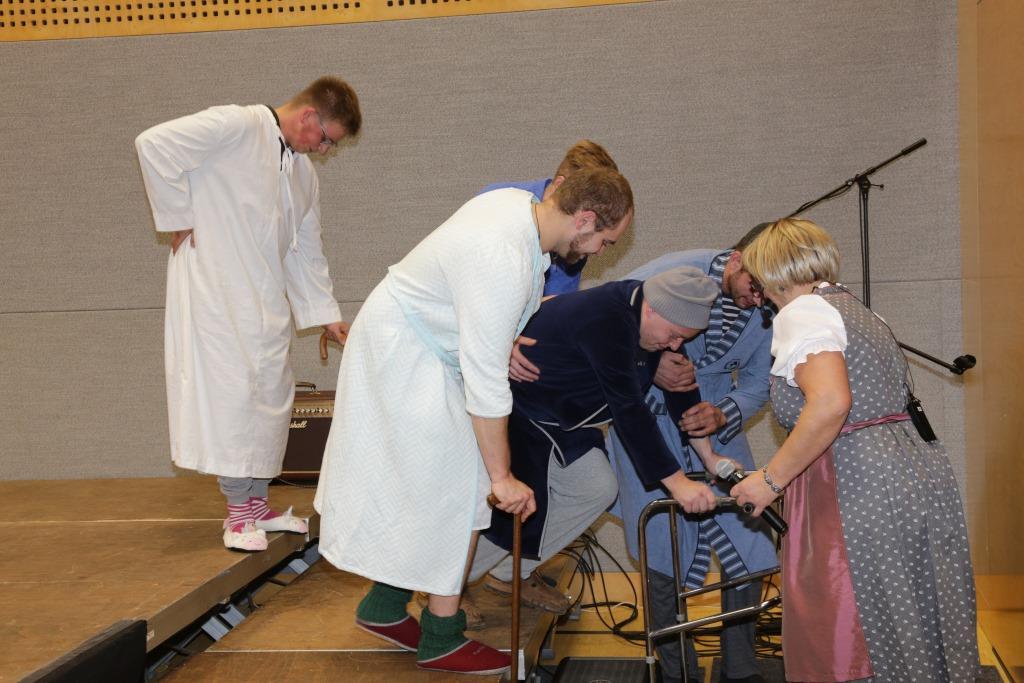 Für einen Angriff auf die Lachmuskeln sorgten auch heuer wieder die Mitglieder der Landjugend mit ihren gezeigten „Einsparungsmöglichkeiten im Altenheim“. Mit diesen lustigen Sketches gelten sie als jährliche Garanten für humorvolle Darbietungen. Nach den Darbietungen des Fotzhobl-Stammtisches der Eni-Tankstelle, das sind Männer und Frauen aus ganz Oberösterreich die schöne Melodien auf ihren Mundharmonikern zaubern, ging es dann in die Pause.