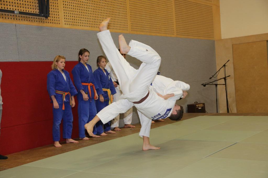 Besonders beeindruckten die Kinder und Jugendlichen der Sektion Judo mit ihren perfekten akrobatischen Darbietungen. Werner Maier aus Vorchdorf, dem das gemeinsame Singen besonders am Herzen liegt, schaffte es auch bei diesem Nachbarschaftsabend mit dem Publikum gemeinsam zu singen.