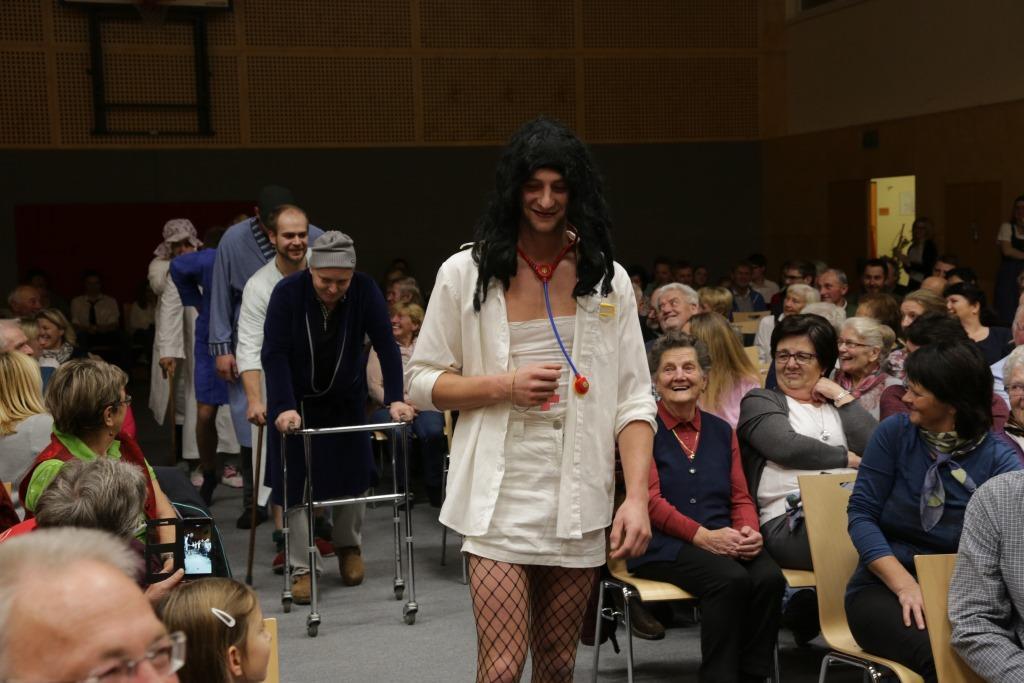 Für einen Angriff auf die Lachmuskeln sorgten auch heuer wieder die Mitglieder der Landjugend mit ihren gezeigten „Einsparungsmöglichkeiten im Altenheim“. Mit diesen lustigen Sketches gelten sie als jährliche Garanten für humorvolle Darbietungen. Nach den Darbietungen des Fotzhobl-Stammtisches der Eni-Tankstelle, das sind Männer und Frauen aus ganz Oberösterreich die schöne Melodien auf ihren Mundharmonikern zaubern, ging es dann in die Pause.