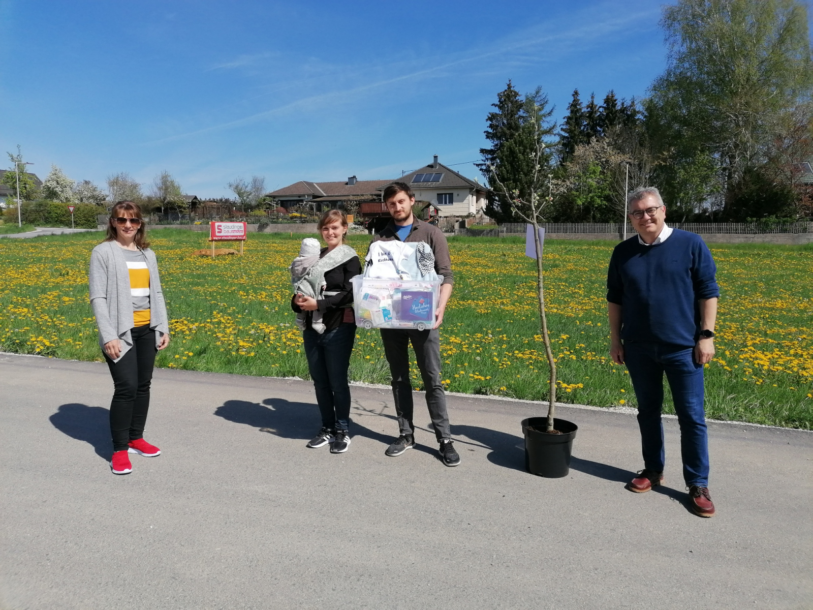 Kürzlich wurden wieder viele Kirchhamer Jungeltern von Bürgermeister Ingo Dörflinger sowie den beiden Vertretern der Familienfreundlichen Gemeinde, Astrid Lüftinger und Gabi Pühringer zu Hause besucht und überbrachten ganz persönlich den Lebensbaum für ihr neugeborenes Kind. Auch die liebevoll zusammengestellte  nette Geschenkbox der Gemeinde – das Kirchhamer Waisat –  wurde bei diesem Besuch übergeben.