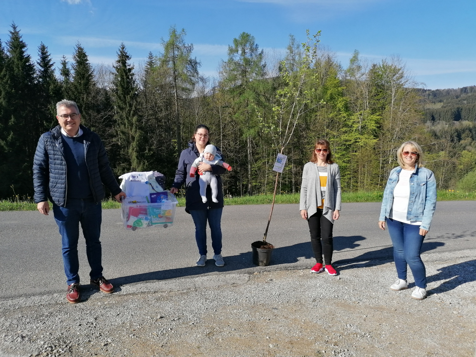 Kürzlich wurden wieder viele Kirchhamer Jungeltern von Bürgermeister Ingo Dörflinger sowie den beiden Vertretern der Familienfreundlichen Gemeinde, Astrid Lüftinger und Gabi Pühringer zu Hause besucht und überbrachten ganz persönlich den Lebensbaum für ihr neugeborenes Kind. Auch die liebevoll zusammengestellte  nette Geschenkbox der Gemeinde – das Kirchhamer Waisat –  wurde bei diesem Besuch übergeben.