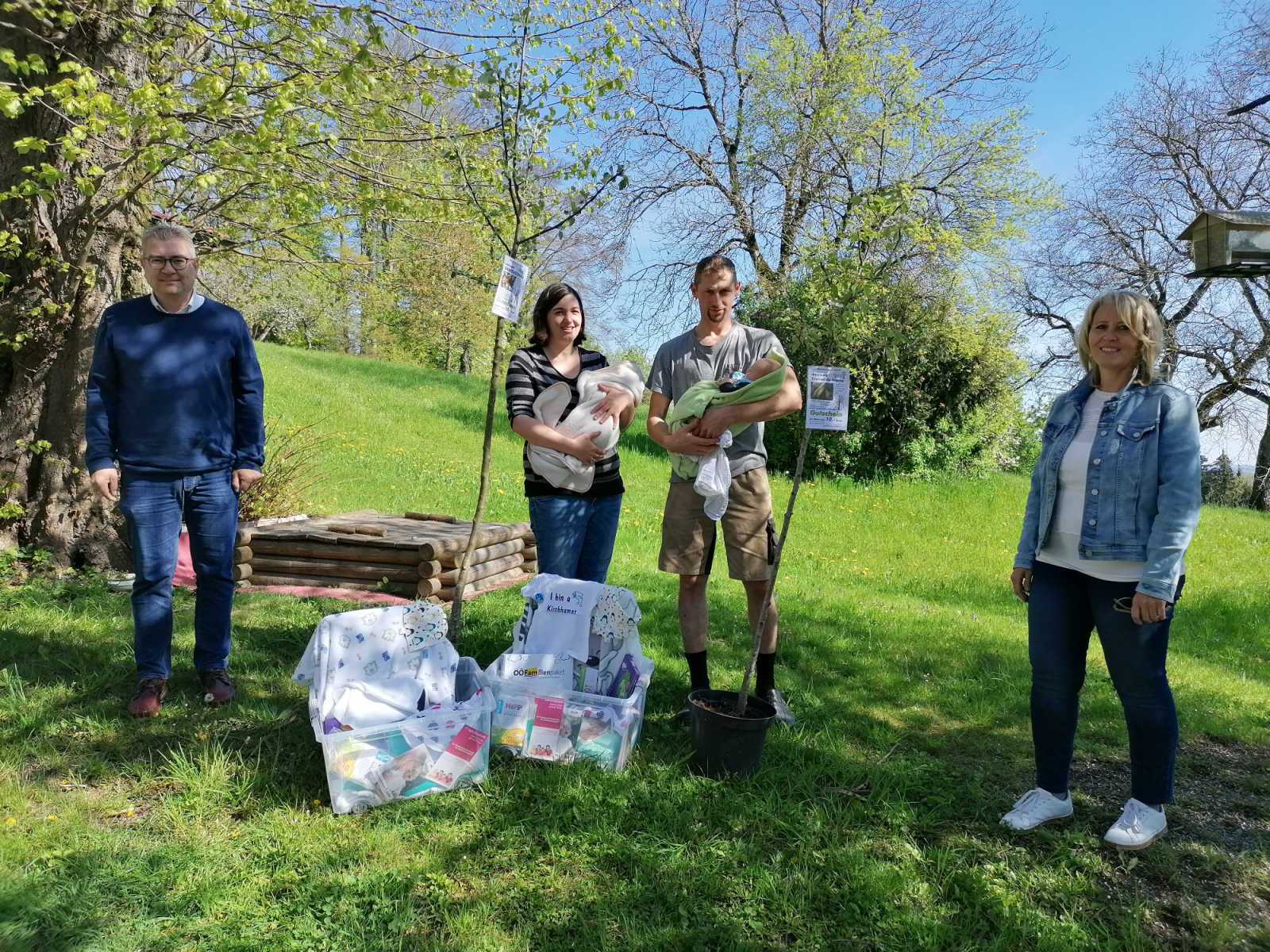 Kürzlich wurden wieder viele Kirchhamer Jungeltern von Bürgermeister Ingo Dörflinger sowie den beiden Vertretern der Familienfreundlichen Gemeinde, Astrid Lüftinger und Gabi Pühringer zu Hause besucht und überbrachten ganz persönlich den Lebensbaum für ihr neugeborenes Kind. Auch die liebevoll zusammengestellte  nette Geschenkbox der Gemeinde – das Kirchhamer Waisat –  wurde bei diesem Besuch übergeben.