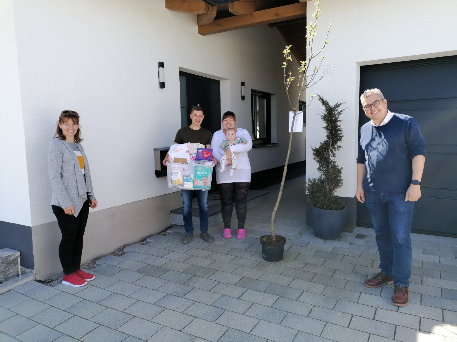 Kürzlich wurden wieder viele Kirchhamer Jungeltern von Bürgermeister Ingo Dörflinger sowie den beiden Vertretern der Familienfreundlichen Gemeinde, Astrid Lüftinger und Gabi Pühringer zu Hause besucht und überbrachten ganz persönlich den Lebensbaum für ihr neugeborenes Kind. Auch die liebevoll zusammengestellte  nette Geschenkbox der Gemeinde – das Kirchhamer Waisat –  wurde bei diesem Besuch übergeben.