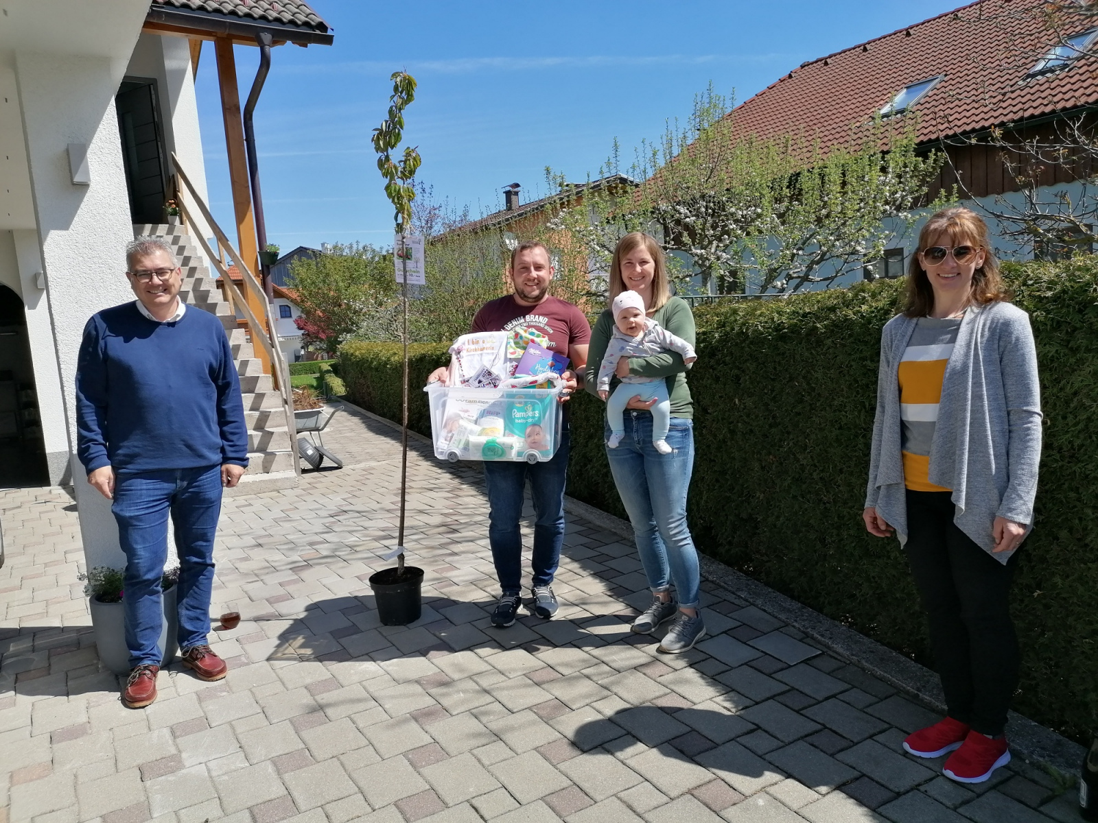 Kürzlich wurden wieder viele Kirchhamer Jungeltern von Bürgermeister Ingo Dörflinger sowie den beiden Vertretern der Familienfreundlichen Gemeinde, Astrid Lüftinger und Gabi Pühringer zu Hause besucht und überbrachten ganz persönlich den Lebensbaum für ihr neugeborenes Kind. Auch die liebevoll zusammengestellte  nette Geschenkbox der Gemeinde – das Kirchhamer Waisat –  wurde bei diesem Besuch übergeben.
