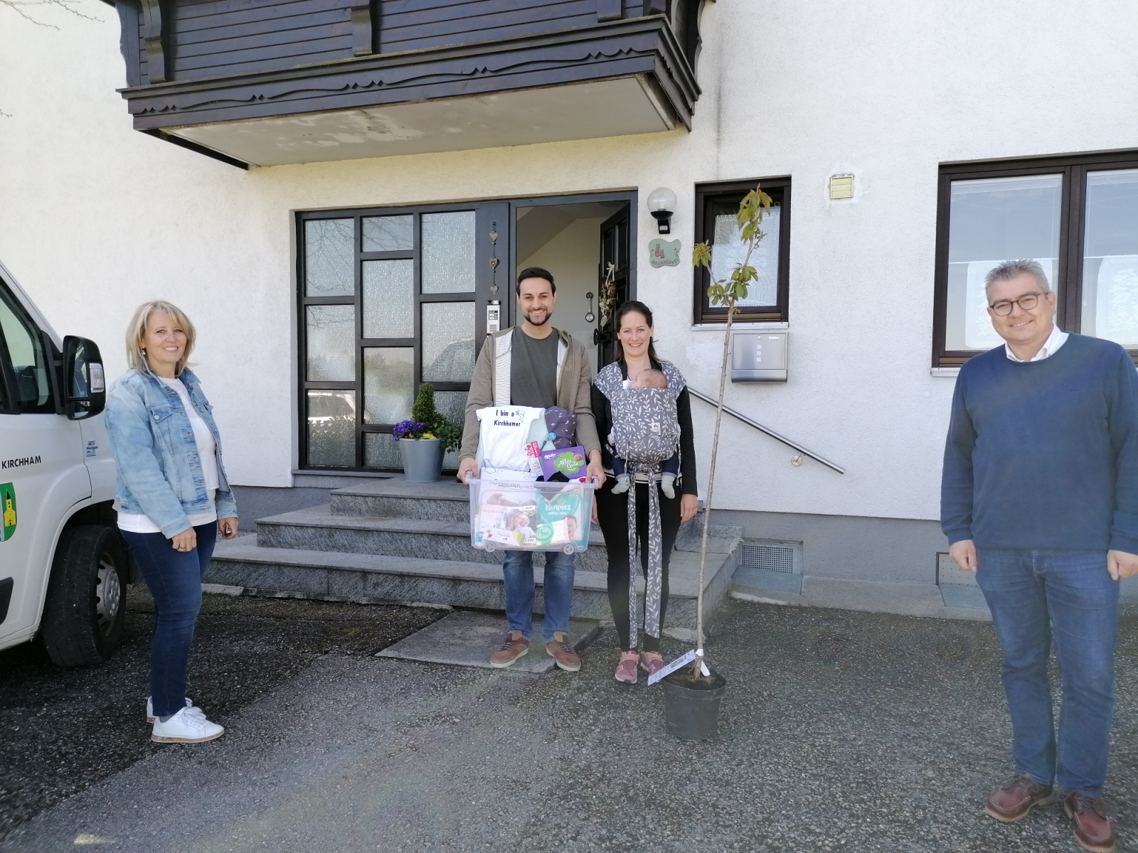 Kürzlich wurden wieder viele Kirchhamer Jungeltern von Bürgermeister Ingo Dörflinger sowie den beiden Vertretern der Familienfreundlichen Gemeinde, Astrid Lüftinger und Gabi Pühringer zu Hause besucht und überbrachten ganz persönlich den Lebensbaum für ihr neugeborenes Kind. Auch die liebevoll zusammengestellte nette Geschenkbox der Gemeinde – das Kirchhamer Waisat – wurde bei diesem Besuch übergeben.