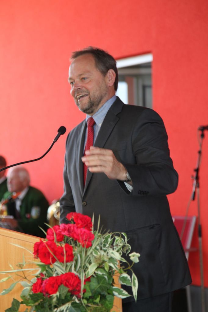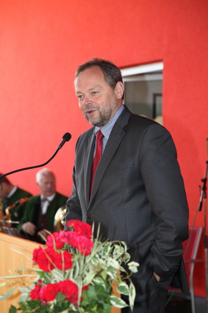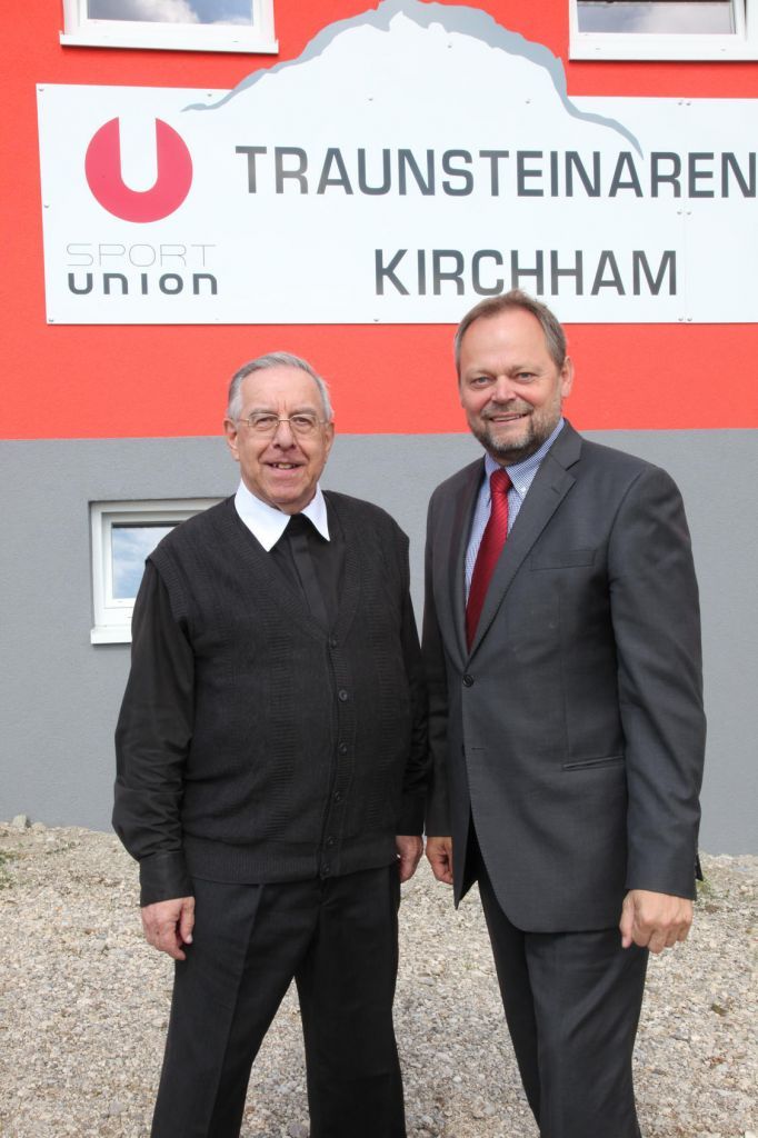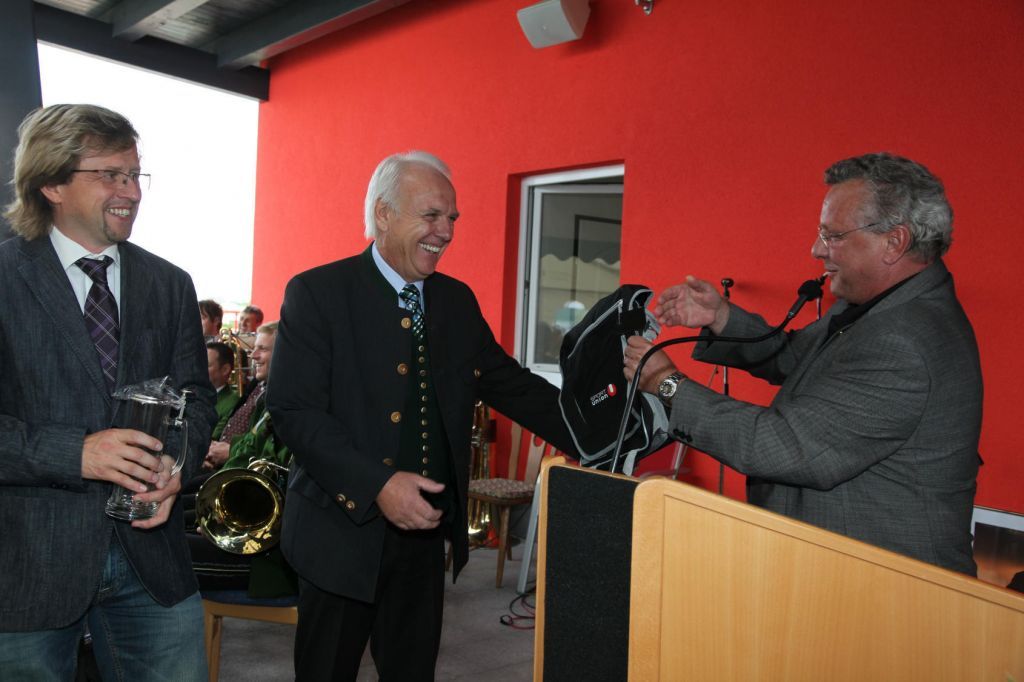 Bürgermeister Hans Kronberger dankte dafür seinen „Bauleitern“ Union-Präsident Rudi Seyr und Fußballsektionsleiter Ing. Manfred Hochreiter und berichtete, dass trotz der angefallenen Zusatzkosten für einen aus Sicherheitsgründen errichteten Gehweg zur Sportstätte, der genehmigte Finanzierungsplan eingehalten wird. Von der Qualität der Anlage als auch von der enormen Eigenleistung zeigte sich selbst der anwesende Landesrat Dr. Josef Stockinger schwer beeindruckt („Das gibt’s sonst nirgends!“). Als Kirchhams Ortsoberhaupt in seiner Ansprache den Wunsch äußerte, dass ihm neben dem grünen Rasen und dem roten Klubheim noch etwas Schwarzes fehle, bekam er vom Gemeindereferenten unter großem Beifall der zahlreichen Festgäste spontan die Zusage, den noch nicht befestigten Vorplatz asphaltieren zu dürfen.