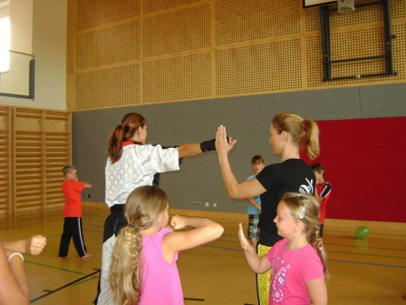 Die Vorchdorferin Judith Sulzner hat alles gewonnen, was man im Kickbox-Sport gewinnen kann: mehrmalige Landes-, Staats- und Europameisterin und 2000 schaffte sie sogar den Weltmeistertitel. Am 31.7. gab sie 24 jungen Kirchhamerinnen und Kirchhamern einen Einblick in diesen tollen, aber auch anstrengenden Sport. Gemeinsam mit Judith und ihrer Kirchhamer Kollegin Maria wurde aufgewärmt, kräftig gedehnt und anschließend wurden einige Kicks eingeübt. Das Belohnungseis haben sich die Kinder nach den zwei spannenden und lustigen Stunden wirklich verdient!