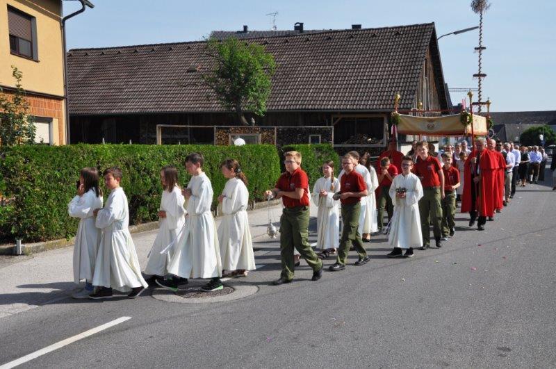 Auch heuer konnte bei sehr schönem Sommerwetter die Fronleichnamsprozession wieder abgehalten werden. Viele Vereine und Körperschaften, angeführt von der Musikkapelle Kirchham, beteiligten sich gemeinsam mit der Pfarrbevölkerung an diesem kirchlichen Fest.