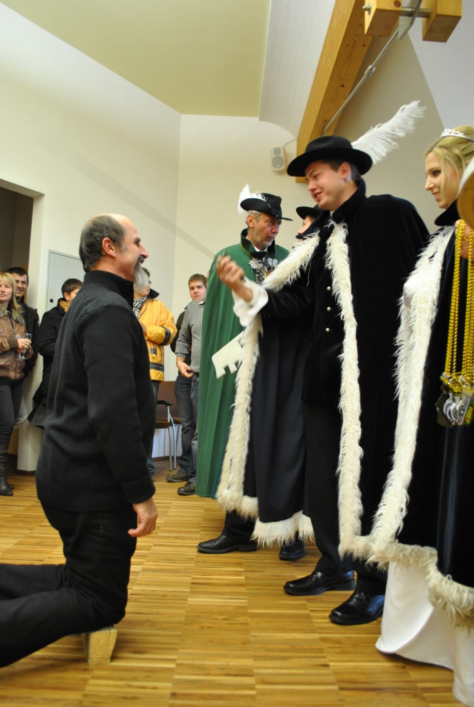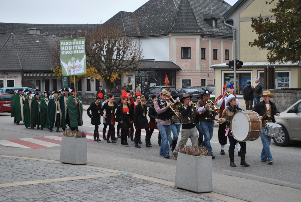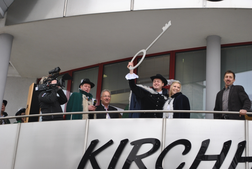 Erfolgreich verlief am 11.11. die Stürmung des Kirchhamer Gemeindeamtes durch das vom neuen Präsidenten Josef „Joschi“ Eder angeführte Faschingskomitee. Obwohl sich die amtierende Regierung fintenreich zur Wehr setzte (Mülltonnen-, Schneeschaufeln- und Schnapsbarrikaden) sah sich Bürgermeister Hans Kronberger dann doch gezwungen,  Macht und vor allem den Schlüssel des Regierungspalastes an die neue Regentschaft  zu übergeben. Mit einem kräftigen „Schluck auf“ wurde die von Prinzessin Sarah, „dem schießende Sangeszwerg vom Rabesberg“ und Prinz Thomas I., „Flink und keck vom Taverneneck“ verlesene Proklamation zur Kenntnis genommen und anschließend im Sitzungssaal  ausgiebig gefeiert.   Die Machtübernahme war notwendig, um am Faschingssonntag, 19. Februar 2012 den großen Umzug in der Laudachtalgemeinde abhalten zu können. Faschingspräsident Eder verweist auch auf den vor dem Gemeindeamt aufgestellten Briefkasten, in dem Hoppalas von berühmten, berüchtigten oder auch ganz normalen Bürgern deponiert werden können, um diese dann im Faschingskurier „Kirchhammer“ veröffentlichen zu können.