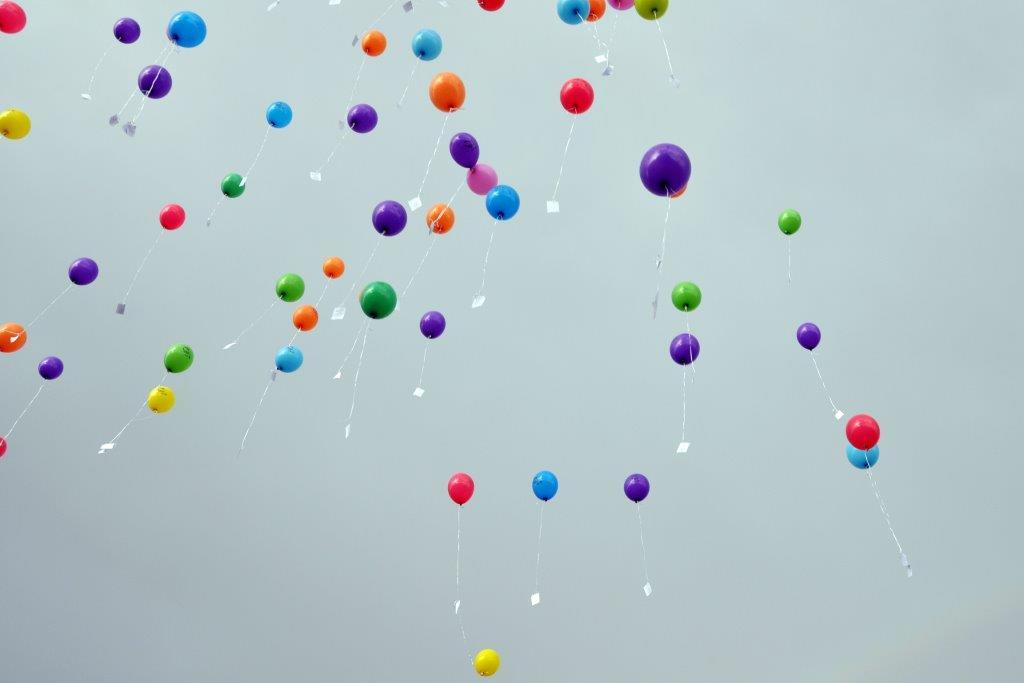 Der gemeinsame Luftballonstart mit einem Regenbogen im Hintergrund war wohl der Höhepunkt des Abends.