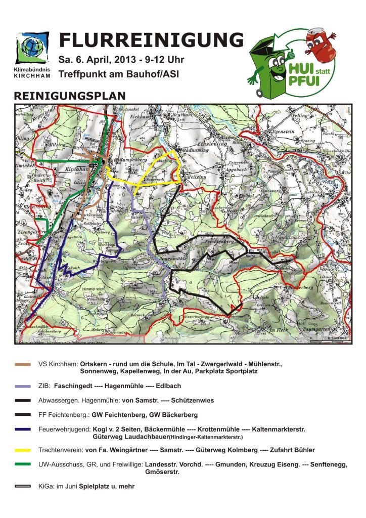 Die große Flurreinigungsaktion Hui statt Pfui startet vom Bauhof/ASZ-Gelände aus. Handschuhe und Müllsäcke werden allen Beteiligten natürlich bereitgestellt. Viele Vereine haben bereits ihre Unterstützung zugesagt. Es sind aber noch zahlreiche freiwillige Helferinnen und Helfer für diese tolle Säuberungsaktion herzllich willkommen.