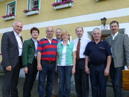 Auf seiner Bezirkstour macht Agrar- und Gemeindereferent Landesrat Max Hiegelsberger auf Einladung von Bürgermeister Hans Kronberger auch in Kirchham Station. Gemeinsam mit den LAbg. Martina Pühringer und Hannes Peinsteiner sowie Vizebürgermeister Anton Pühringer informierte sich Hiegelsberger beim „Matthias z’ Bergham“ (Familie Franz Waldl-Gruber) aus erster Hand über die Imkerei in unserer Region. Imkervereins-Obmann Franz Trausner und seine Kollegen aus Kirchham und Vorchdorf berichteten über Erfolge und Probleme der Imker. Besondere Beachtung fand das wunderschöne Bienenhaus von Ernst Stadlhuber direkt vor dem stattlichen Hof der „Matthiasen-Familie“, das aber nicht nur bestaunt sondern auch fachkundig besichtigt wurde. Der Landesrat verwies auf die Wichtigkeit der Bienenarbeit für die Landwirtschaft und somit auch für eine intakte Umwelt im weitesten Sinne.