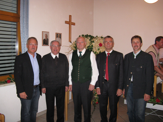 Bürgermeister Johann Kronberger, Pfarrer Konsistorialrat P. Burkhard Berger, Geschichtenschreiber Helmuth Piringer, Pfarrgemeinderatsobmann Rupert Maringer, Vizebürgermeister Anton Pühringer